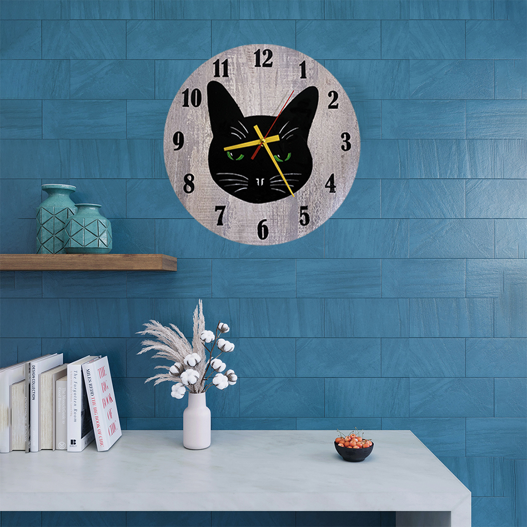 Modern Cat Wall Clock – MDF Wooden Decorative Wall Art for Living Room
