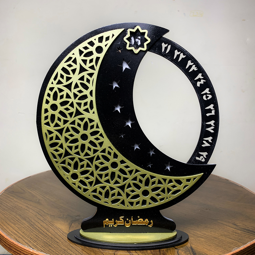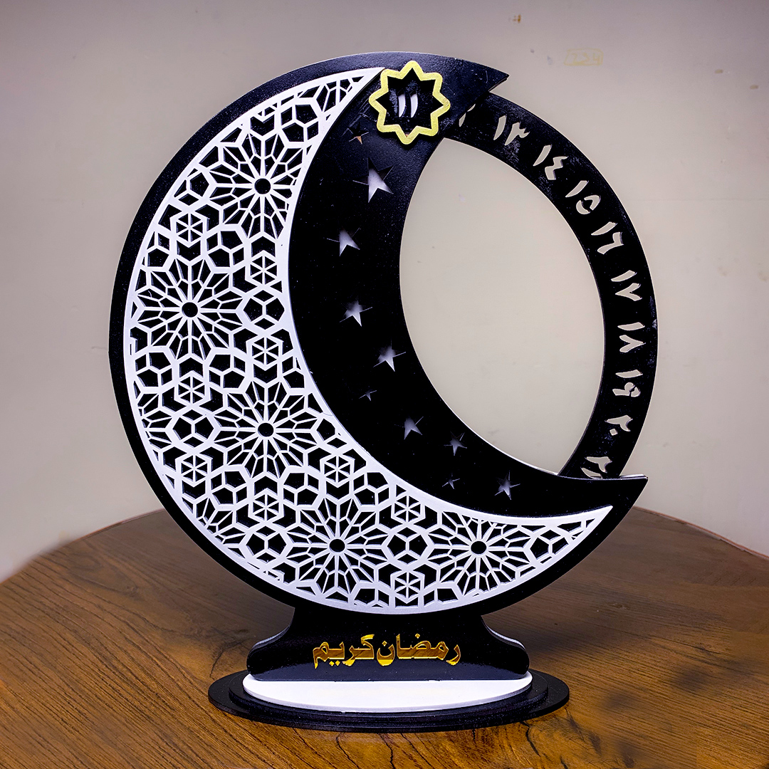 Bring the spirit of Ramadan into your home with this beautifully handcrafted Islamic Ramadan Calendar, designed with four precision-cut layers of premium MDF wood to create an elegant 3D effect. Each piece is carefully prepared with a protective wood primer, then painted with high-quality deco premium paints for rich, vibrant colors. The final touch is a smooth coat of lacquer spray, giving the calendar a gentle shine while protecting the artwork from dust, moisture, and fading.